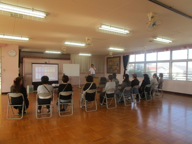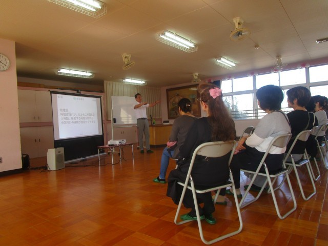 教育長は、「子どもの良いところを見逃さない」「結果ではなく過程を認める声かけが必要」「子どもを信じて見守る」というかかわり方が子どもたちの成長につながりますと話され、保護者の皆さん、地域の皆さんもうなずきながら熱心に聞いておられました。