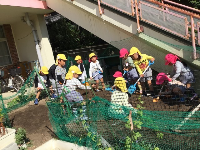 収穫の日がを今から楽しみにしている子どもたちです。