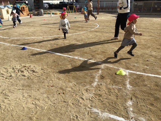 その中で、リレーをする姿も見られました。西幼稚園のお友だちと一緒に走る順番を相談したり、「がんばれ~!」と応援したり、遊びを通してかかわる姿が見られました。
