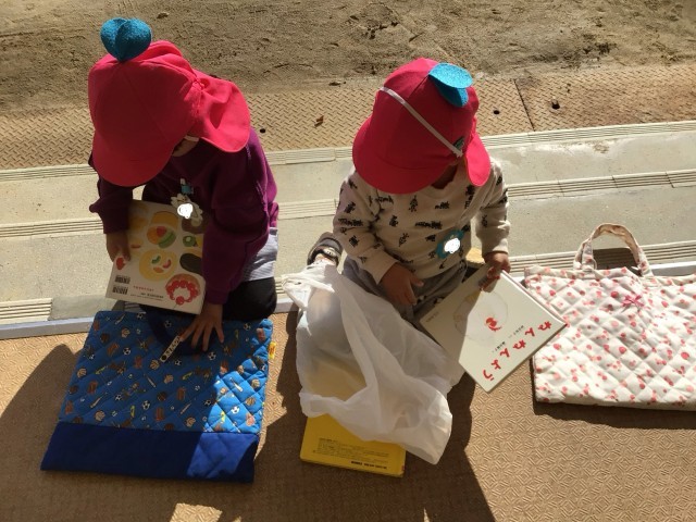 絵本を手に取り、友だちと見せ合ったり、じっと見たり・・・それぞれが自分の世界を楽しむ姿が見られました。