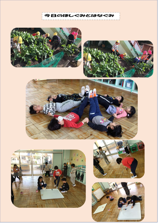 そのあとも保育室に戻り一緒に体を動かして遊んでいると、「なあ運動会でやったやつみたいやなあ」とみんなが一斉にポーズをとる姿も見られました。ほし組の子どもたちがこままわし競争を始めるとはな組の子どもたちも「一緒にしよう!」と違うこまで競争を楽しんだり、一緒に給食を食べたりして、いっぱい関わって遊んだ一日でした。明日もいっぱい遊ぼうね(#^.^#)