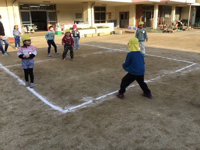 当たって悔しそうにする姿や、勝って喜ぶ姿も見られましたが、「もう一回やろう」と気持ちを切り替え、遊びを続けていました。