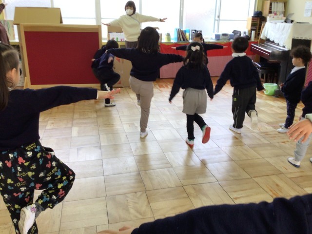 リズムに合わせて体を動かし、笑顔が広がっていく時間は異年齢ならではの温かさを感じる時間となりました。