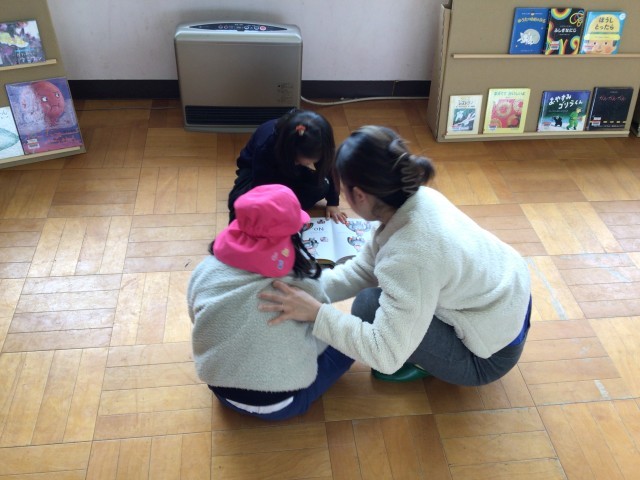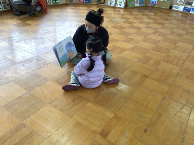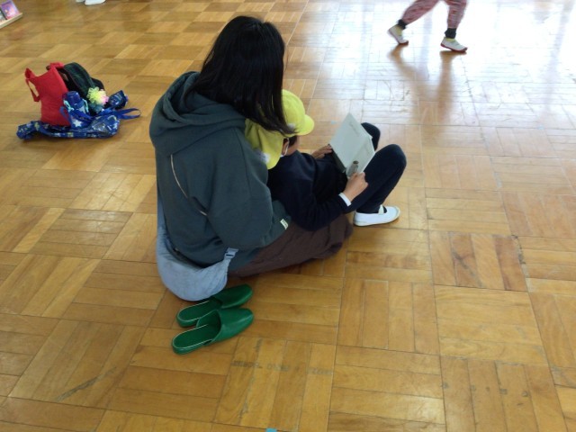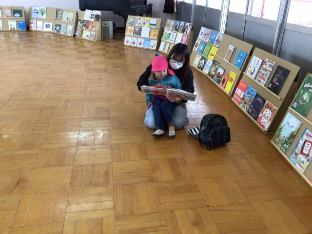 膝の上で読んでもらったり、同じページをのぞき込んだりしながら、親子で心を通わせる温かな時間となりました。