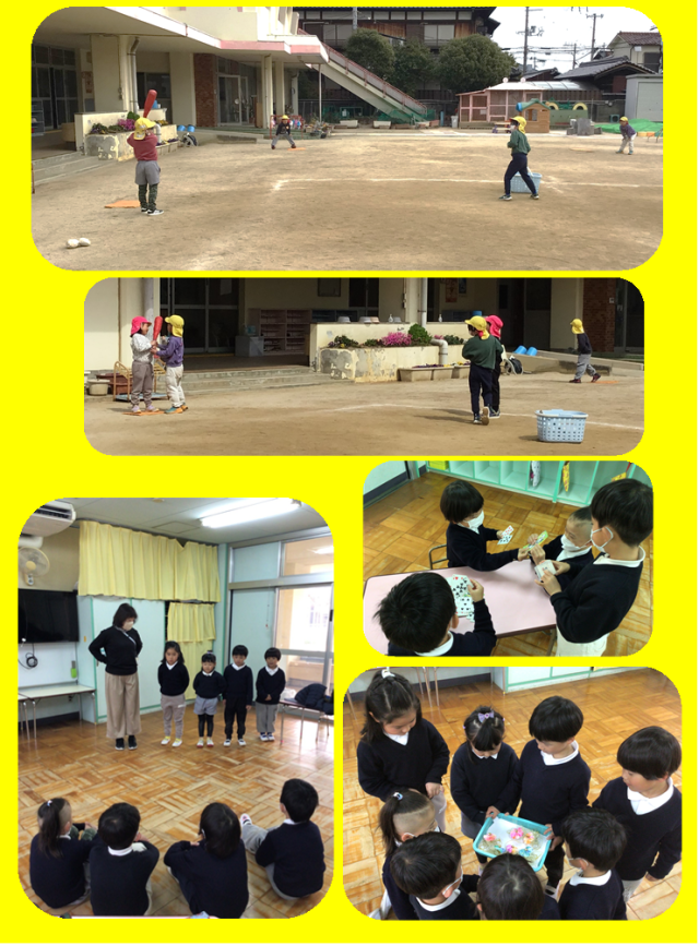 今日は、今までの楽しかった遊びを存分に遊んだほし組さん。ドッジボールや野球、トランプなど友だちを誘い合って遊びが始まりました。遊びの中で、友だちにコツを教えたり、自分たちで相談して遊びを進めたり、友だちと面白さを共有したり、話し合いで解決したりなど、様々な姿に職員たちは胸が熱くなりました。そして、今日は、はな組さんからサプライズがありました!なんと、手作りコサージュをほし組さんのために作り、気持ちを込めてプレゼントをしてくれました。プレゼントをしてくれる時には、一人一人が「2年間一緒に遊んでくれてありがとう」「一緒に遊んでくれて嬉しかったよ」…と気持ちを伝えてくれ、ほし組の子どもたちも、嬉しさでいっぱいになりました。明日の卒園式には、はな組さんの手作りのコサージュを胸に卒園式に臨みたいと思います。