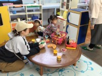 今日は朝からお天気がどんより…。心配になったみんなは「てるてるぼうずつるそう!」と言って園庭につるしました。みんなの願いも天に届いたのでしょう、お天気も何とか大丈夫でした。8園みんなが自然の家に集まり、忍者と一緒に体操やゲームをし、みんなの笑顔が輝いていました!山の散策は、津田幼稚園のお友達と一緒に出かけ、少し急な坂道も、急な階段も「これも忍者修行みたいだね」と言いながら、元気いっぱいでしたよ。見晴らしの良い山の上からは、みんなで「やっほ〜!」と、自然の中に子ども達の声が響いていました。アスレチックにもチャレンジし、自然の中でおもいきり遊んできました。