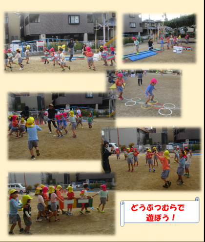 今日は、貝高生のお姉さんたちが幼稚園に来てくださいました。 ホールで、ほし組の...