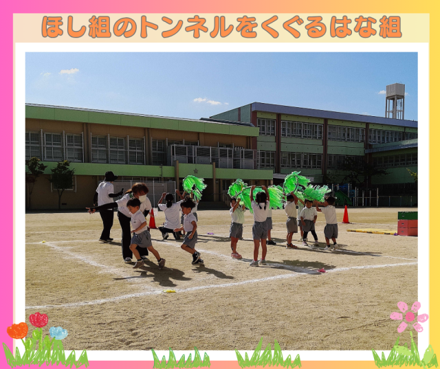 やまぐみの子どもたちははなぐみ・ほしぐみのプログラムを「がんばれ!」と大きな声で応援しています。