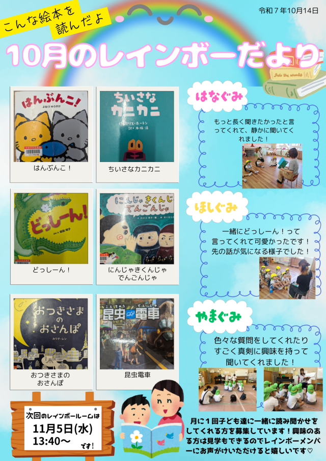 レインボーさん作成の「10月レインボーだより」もぜひご覧ください。