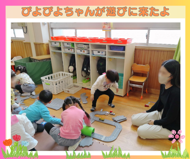 はなぐみ・ほしぐみの子どもも嬉しそう!「こっちやよ」と優しく声をかけて、好きなおもちゃで一緒に遊んでいました。
