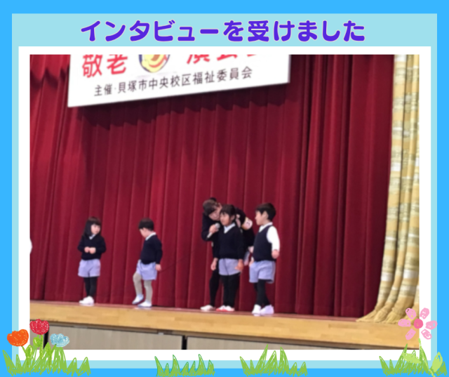 幼稚園の子どもたちは、たくさんのお客様の前で『エビカニクス』を踊りました。踊った後は、1人ずつにインタビューも!みんな上手に自分の今の気持ちを話すことができていましたよ。