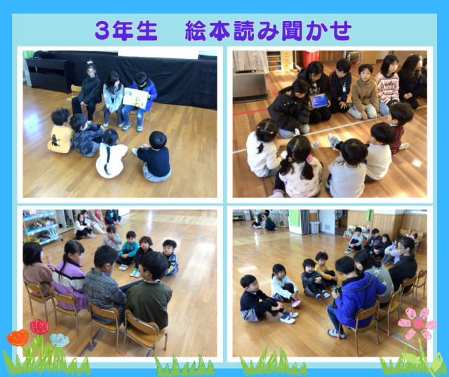 金曜、今日と、3年生がよみきかせにきてくれています。