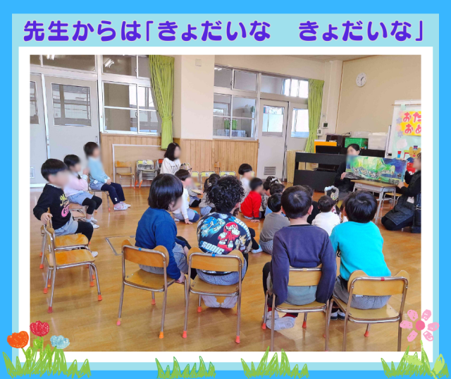先生からのプレゼントは大型絵本の読み聞かせでした。