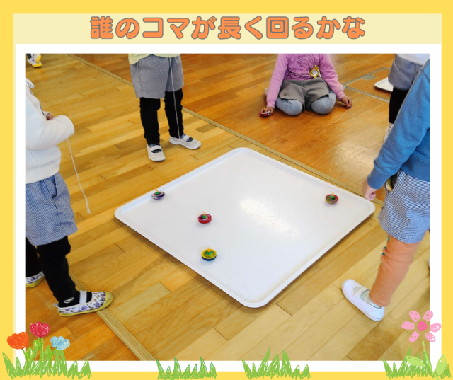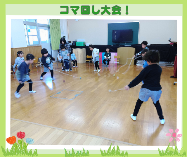 今日は中央幼稚園 コマ回し大会!