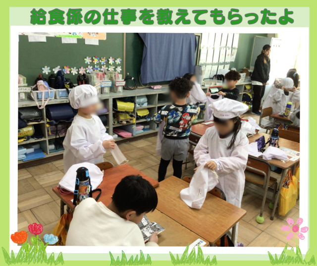 給食当番の仕事も教えてもらいましたよ。