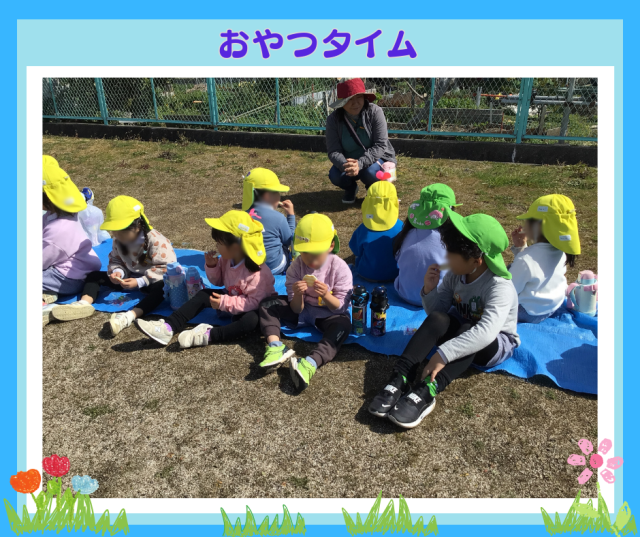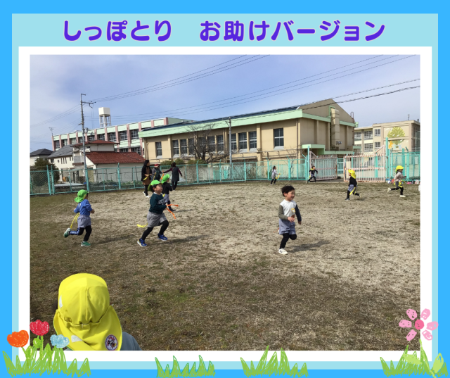 幼稚園に帰ってきてから、園庭でちょっと休憩して、そのあとみんなでしっぽ取り!子どもたち、走るのがずいぶん速くなりました。