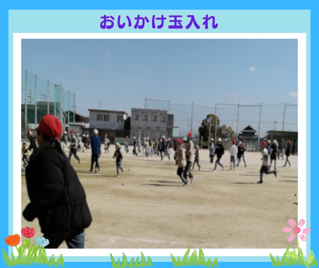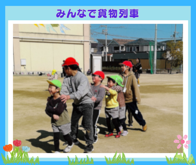広い校庭で貨物列車と、おいかけ玉入れを楽しみました。