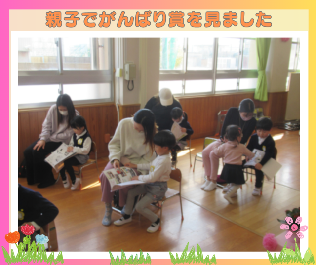 お家の人と一緒にがんばり賞を見る子どもたちの顔はニコニコ!