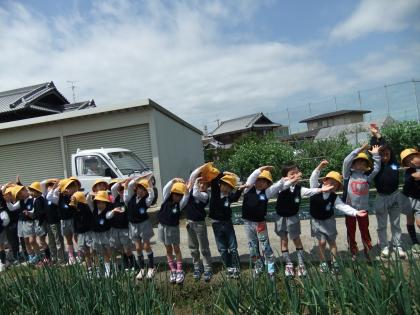 PTA総会の間、年長児は畑にお散歩に行きました。