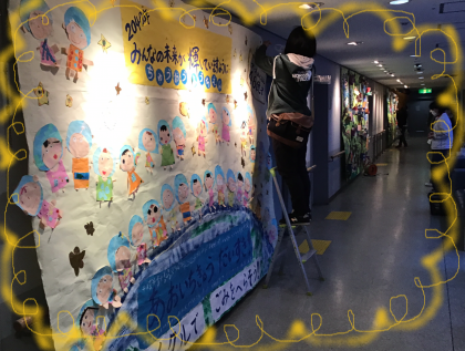 貝塚市立幼稚園5園の作品が、廊下に並ぶと迫力満点!