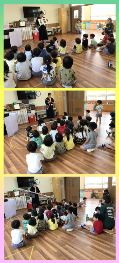 そのあと全園児が集まって、不審者避難訓練をしました。『いかのおすしが来ました』を合言葉に逃げます。